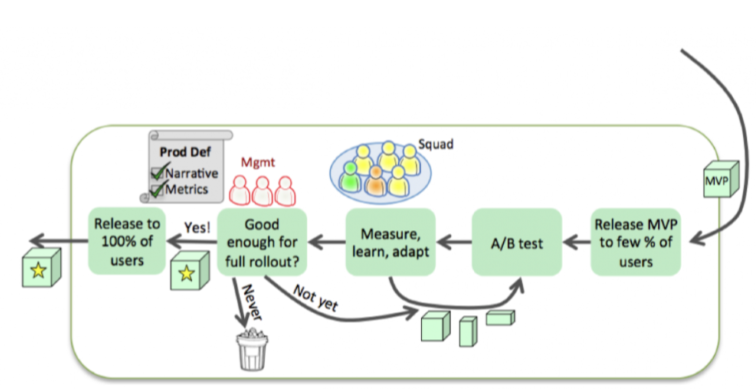 • Ship it阶段:逐渐将产品扩散到所有用户,同时进行度量和分析,确保产品在真实环境下,也能够达成它的设计初衷。